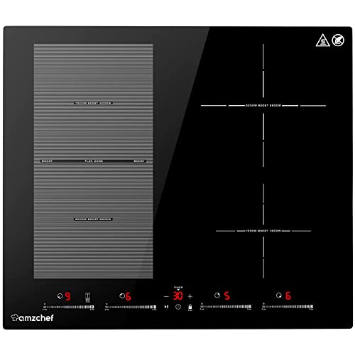 Induction AMZCHEF 60cm - 4 zones boost flexibles, 9 niveaux,...