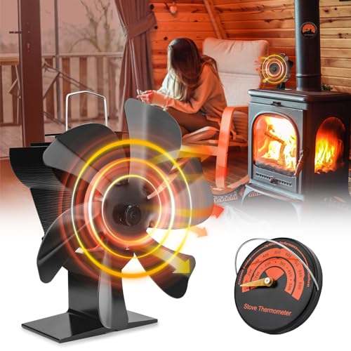 highsam Ventilateur Poele à Bois 6 Pales avec Thermomètre, V...