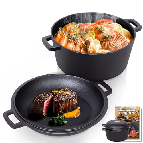 Todeco Marmite Fonte 2 en 1, couvercle poêle, 5L, fonction d...