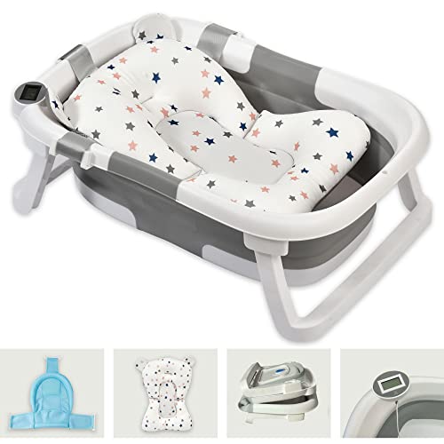 PUBA Thermomètre Baignoire Pliable avec Coussinet Antidérapa...