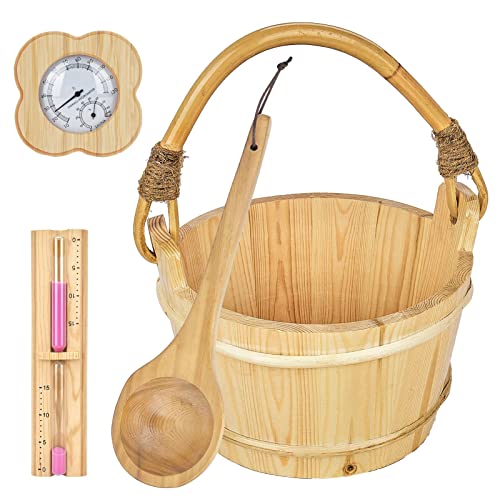 Seau bois Sauna avec PVC, Louche, Sablier, Thermo-hygromètre