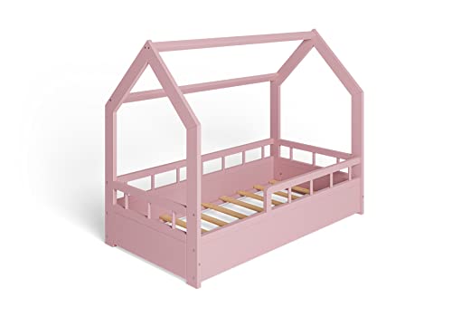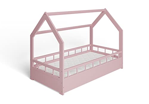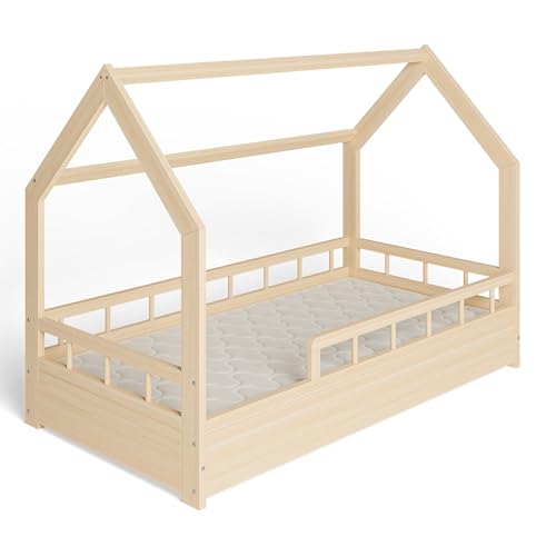 Lit Enfant Bébé Matelas Maison 80x160 cm Massif Cabane Prote...