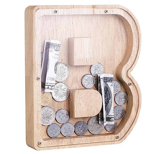 TsunNee Tirelire en bois avec lettres de l''alphabet transpa...