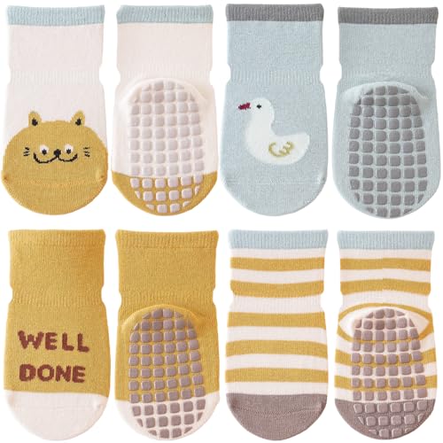 Simpeak Chaussettes Antidérapantes Bébé Lot de 4 Paires Unis...
