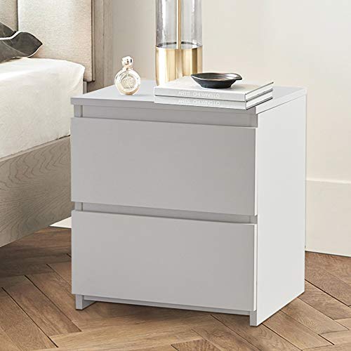CLIPOP Table de Chevet Blanche en Bois à 2 tiroirs avec Desi...