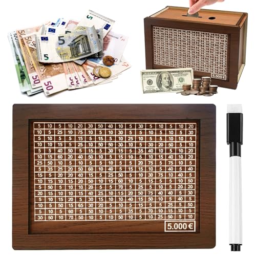 Alyvisun Tirelire en Bois, 5000€ Tirelire avec Marqueur et A...