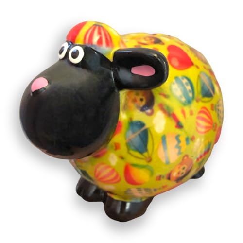 Superbe tirelire en forme de mouton colorée avec motif ballo...