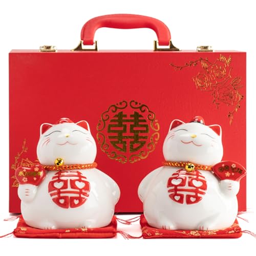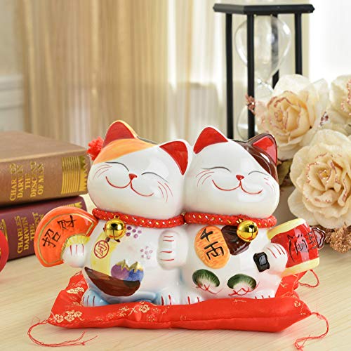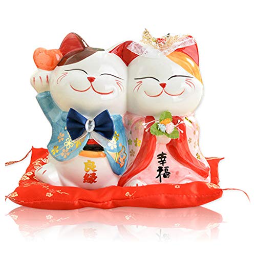 Tirelire en céramique pour couple Maneki Neko Lucky Cat Tire...