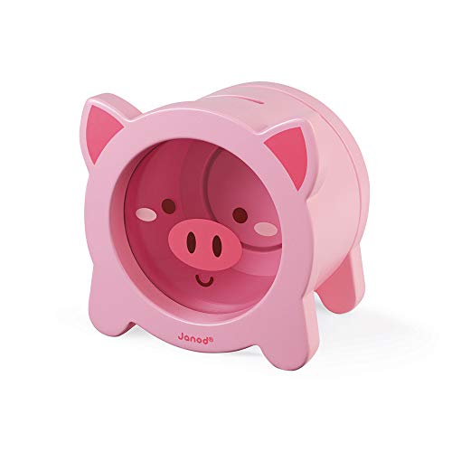 Janod - Tirelire Enfant en Bois Cochon - Face Transparente e...