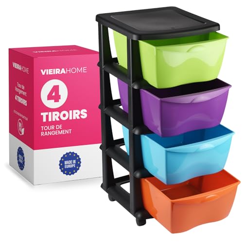 Tiroir rangement plastique 4 tiroirs caissons multicolore en...