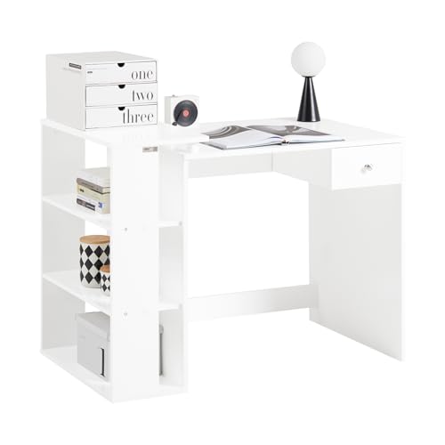 Table FWT35-W SoBuy avec étagères et tiroir - Blanc