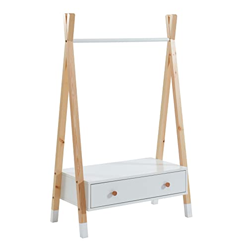 BAÏTA Portant Enfant TIPI - 1 tiroir - Blanc et Bois - L80cm
