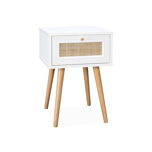 Sweek - Table de chevet bois avec 1 tiroir blanc, Bohème