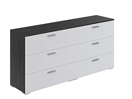 IDMarket Commode 6 tiroirs Bois Gris Blanc