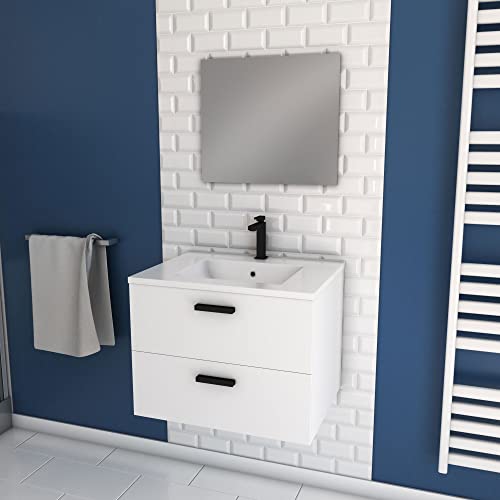 Aurlane Salle de Bain Suspendu 2 Tiroirs Blancs avec Vasque...