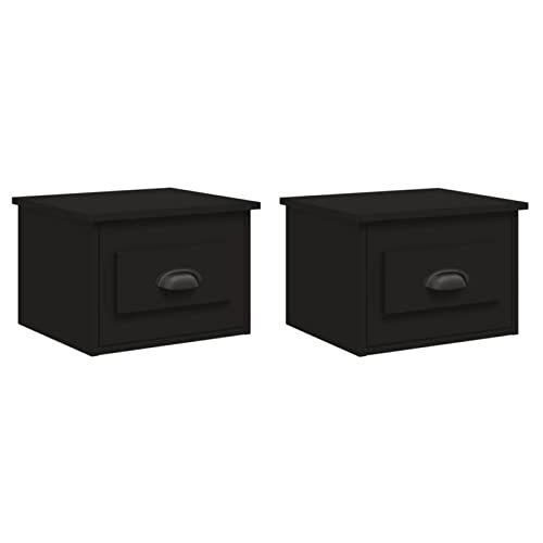 Table de chevet murale, meuble à tiroirs suspendu chêne marr...