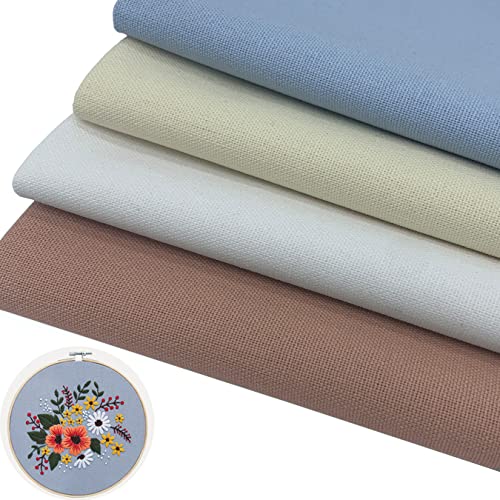 aufodara 4pcs Tissu en Lin Toile Aïda Point de Croix 50x50cm...