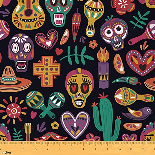 Crâne de sucre Tissus au Metre, squelette de style mexicain...