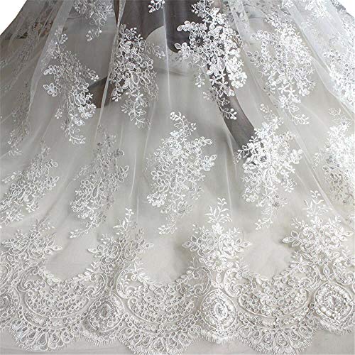 URROMA 1 Yard Broderie Papillon Tissu Dentelle, Blanc 3D Pap...