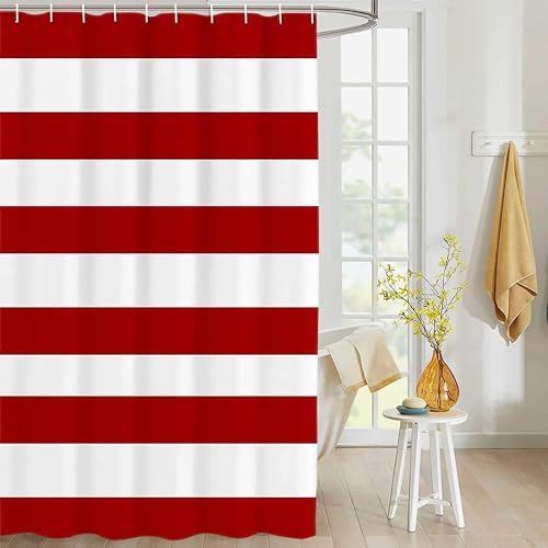 Rideau Douche Rayure Rouge Rideau de Douche Anti Moisissure...