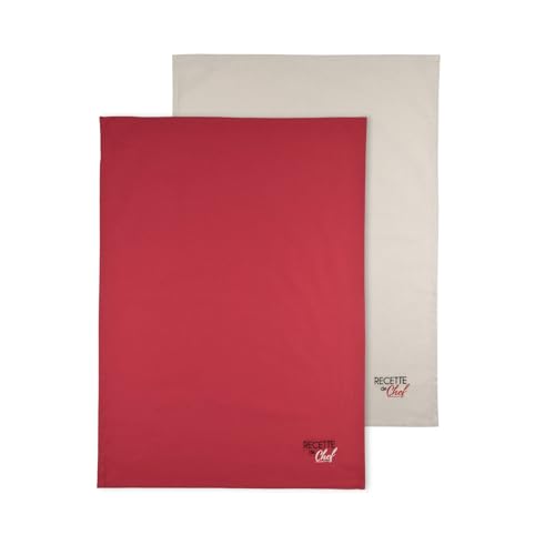 ?️ INCLUS - 3 Torchons (50 x 70 Cm) Vibrato Rouge, Coton Tis...