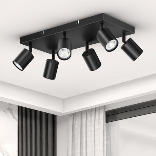 Ketom Plafonnier LED Noir Rectangulaire Spots Orientables Pi...