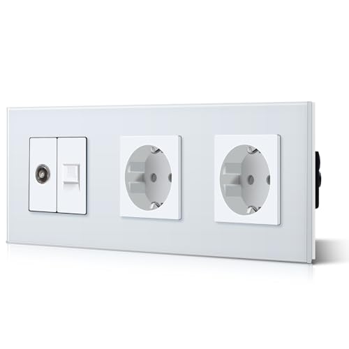 BSEED Double Prise Schuko TV PC CAT5e Norme UE Verre CE 16 A...