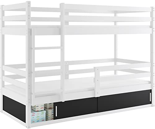 Lit superposé Bingo 87x194 cm en pin massif blanc, gris ou b...
