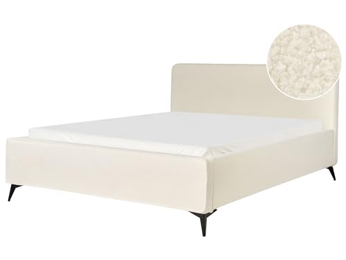 Lit Pieds Noirs Bouclé Blanc Crème 180 x 200 cm Valognes