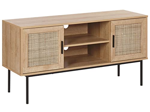Buffet TV Design Bois Clair 2 Portes Cannage Rotin Trous Pas...