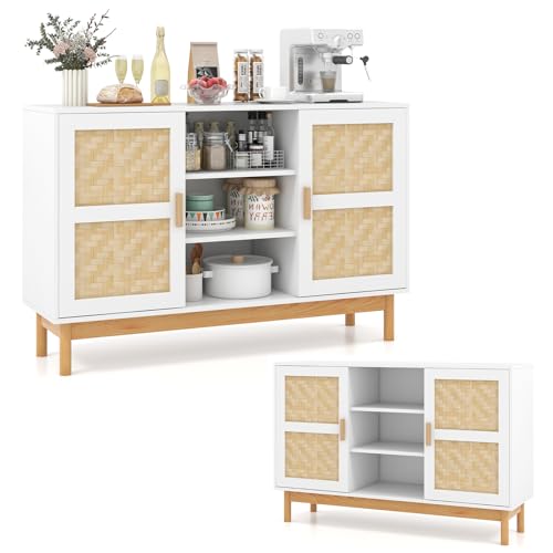 KOMFOTTEU Buffet avec portes tissées en bambou, armoire de c...