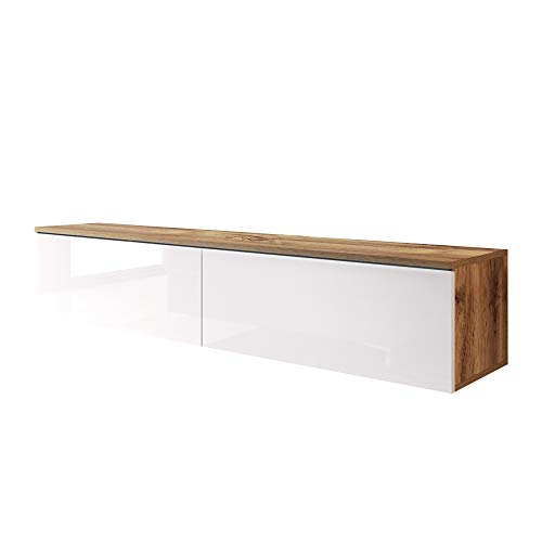 TV Mural Blanc Suspendu Étagère Multimédia Meuble TV Flottan...