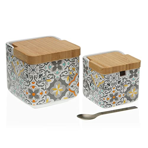 Versa Alfama Salier Sucrier Ensemble Bois Métal Cuillère, Di...