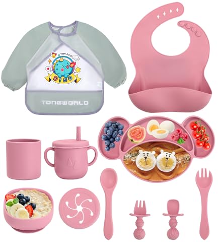 Lot de 8 couverts silicone pour bébé, ventouse, assiette, cu...