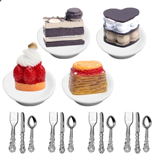 Mezrkuwr Lot de 4 assiettes miniatures avec gâteau, maison d...