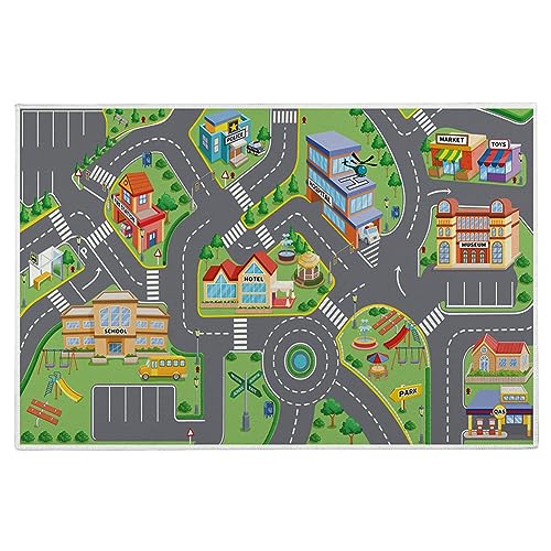 Tapis de jeu velours cristal enfant piste circuit antidérapa...