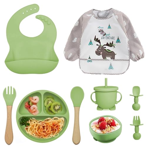 Lot de 9 Repas Bébé, Couverts Vaisselle, Set Silicone