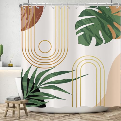 Rideau de Douche Aspirant Boho, Feuilles Abstraites Moderne,...
