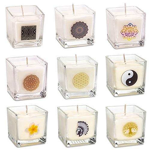 Lot composé de 9 bougies en cire de colza : 1 x Palo Santo,...