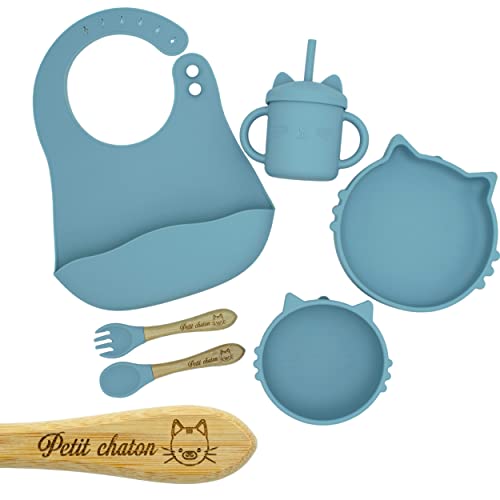 Ensemble repas bébé chat silicone antidérapant complet avec...