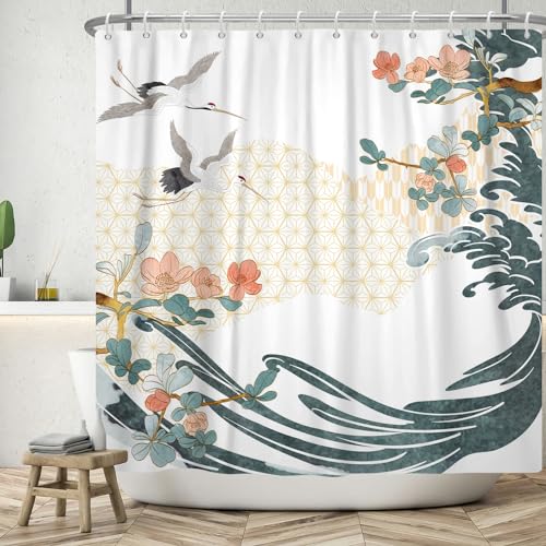 ASDCXZ Rideau de Douche 180x180 cm, Peinture Japonaise Asiat...