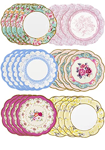 Lot de 24 Assiettes Jetables Fleuries - Vaisselle Jetable Vi...
