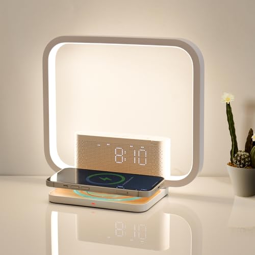 Reteyun Lampes Chevet Sans Fil 10w, 2 Réveils, Lumière Révei...