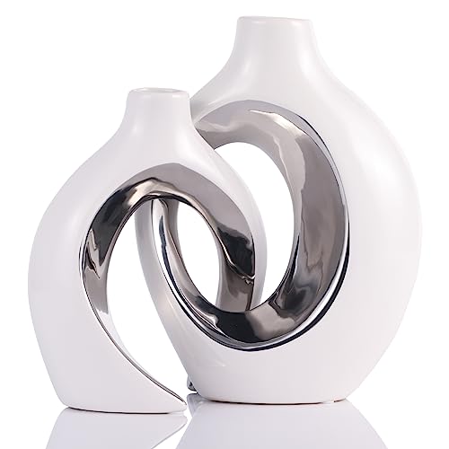 Vase moderne à fleurs, vase céramique argent gris 30cm
