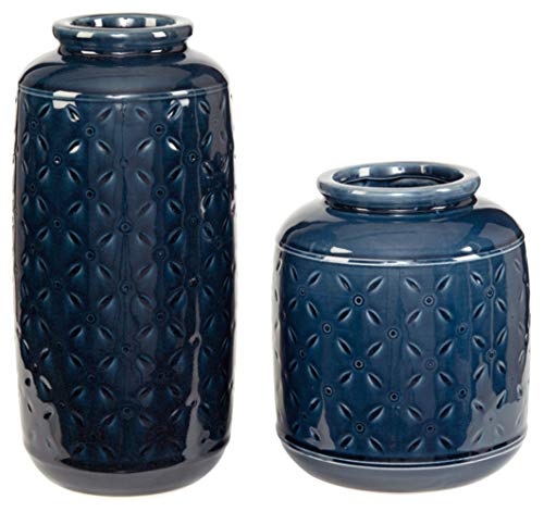 Vase en céramique avec art creux, 28 cm de haut, vase bleu e...