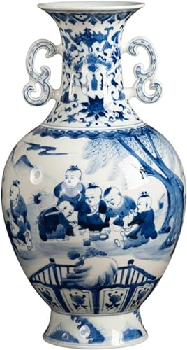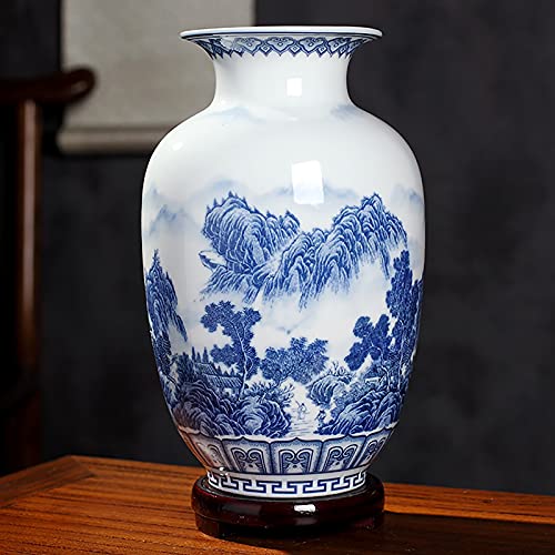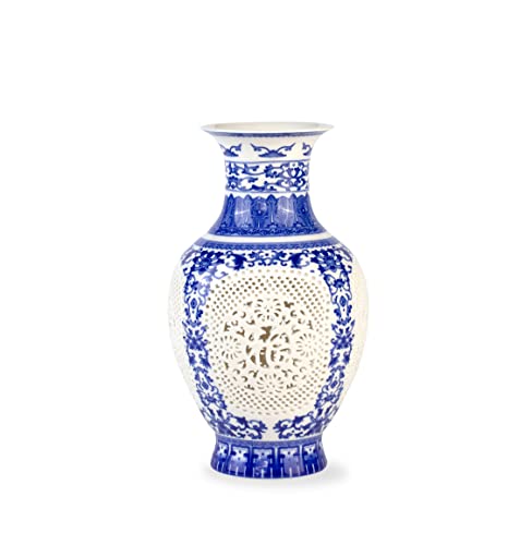 HTL Vase Decoratif Vase en Porcelaine Bleue et Blanche, Chin...