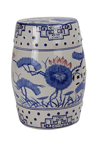 Tabouret chinois céramique lotus D33xH46cm