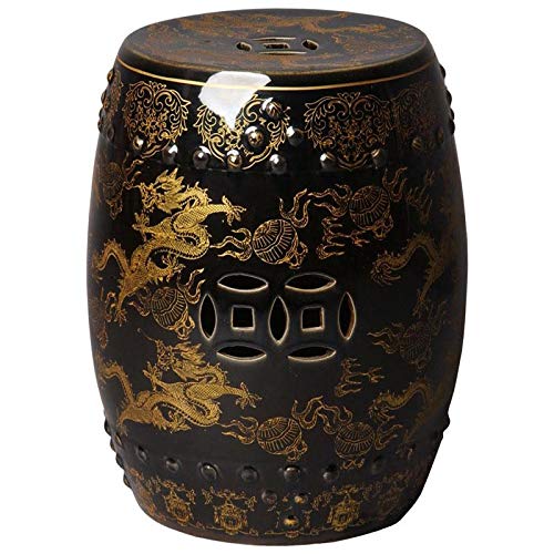 Tabouret chinois céramique Dragon noir D33xH45cm