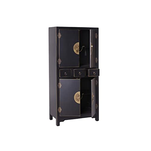 Armoire chinoise 4 portes, 3 tiroirs Noire