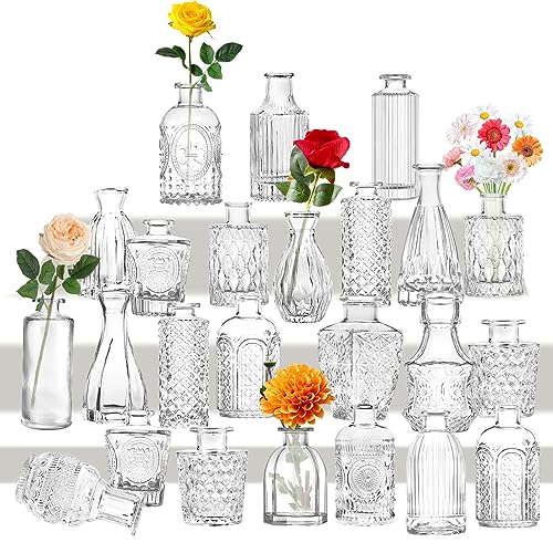 Hewory Petit Vase Verre pour Fleurs en Verre Set, Mini Vase...